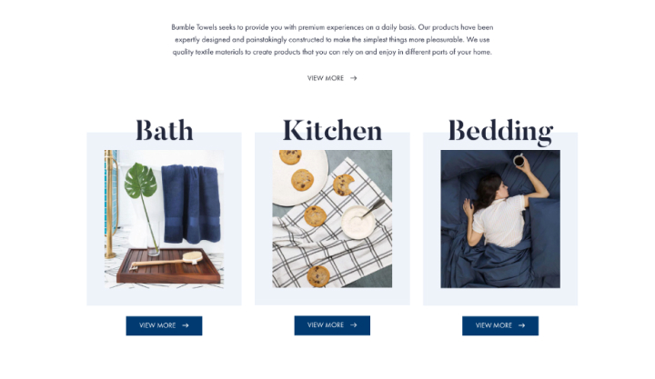 Bumble Towels is a Shopify website dealing with selling towels online and provides 100% combed cotton bath towels that are densely woven using incredibly high picks per inch to produce a plush towel feel, giving you a spa-like experience every day.